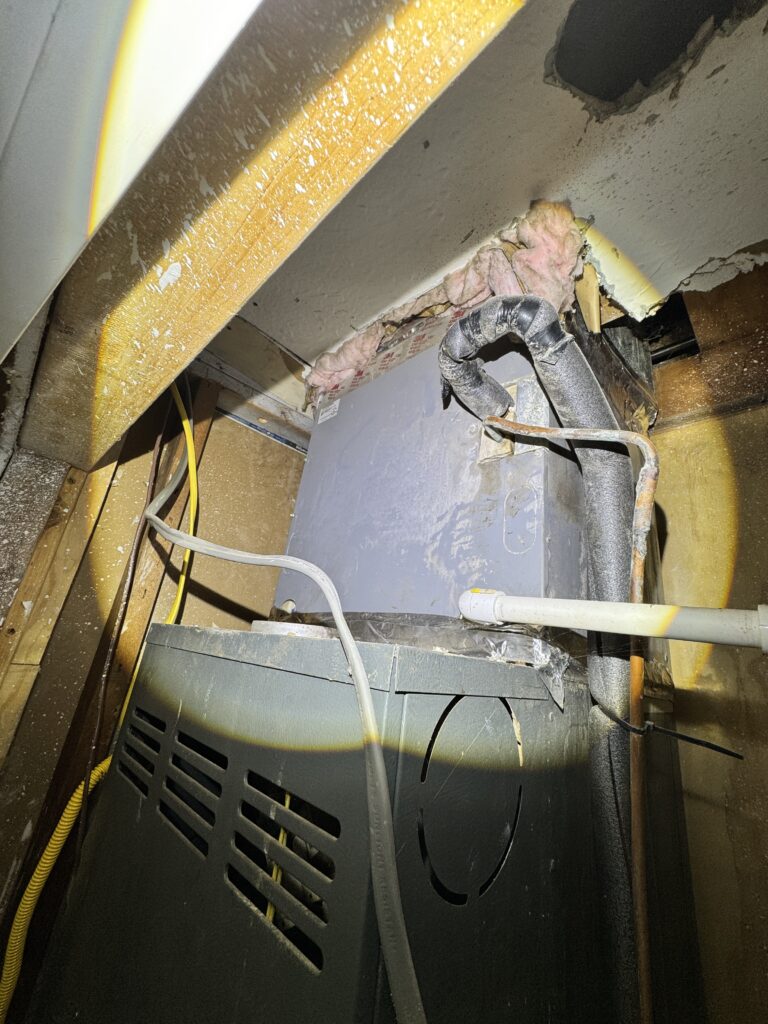 A recent inspection shows exactly why basic function is not enough. The furnace had no gas flue vent installed at all. It sat in an interior closet. Not one inch of vent pipe was connected to the draft hood. That means all combustion byproducts were being released into the home.